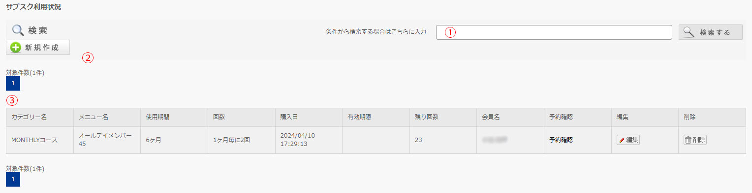 | 編集 | ユーザーが所有するサブスクチケットの詳細を編集できます |