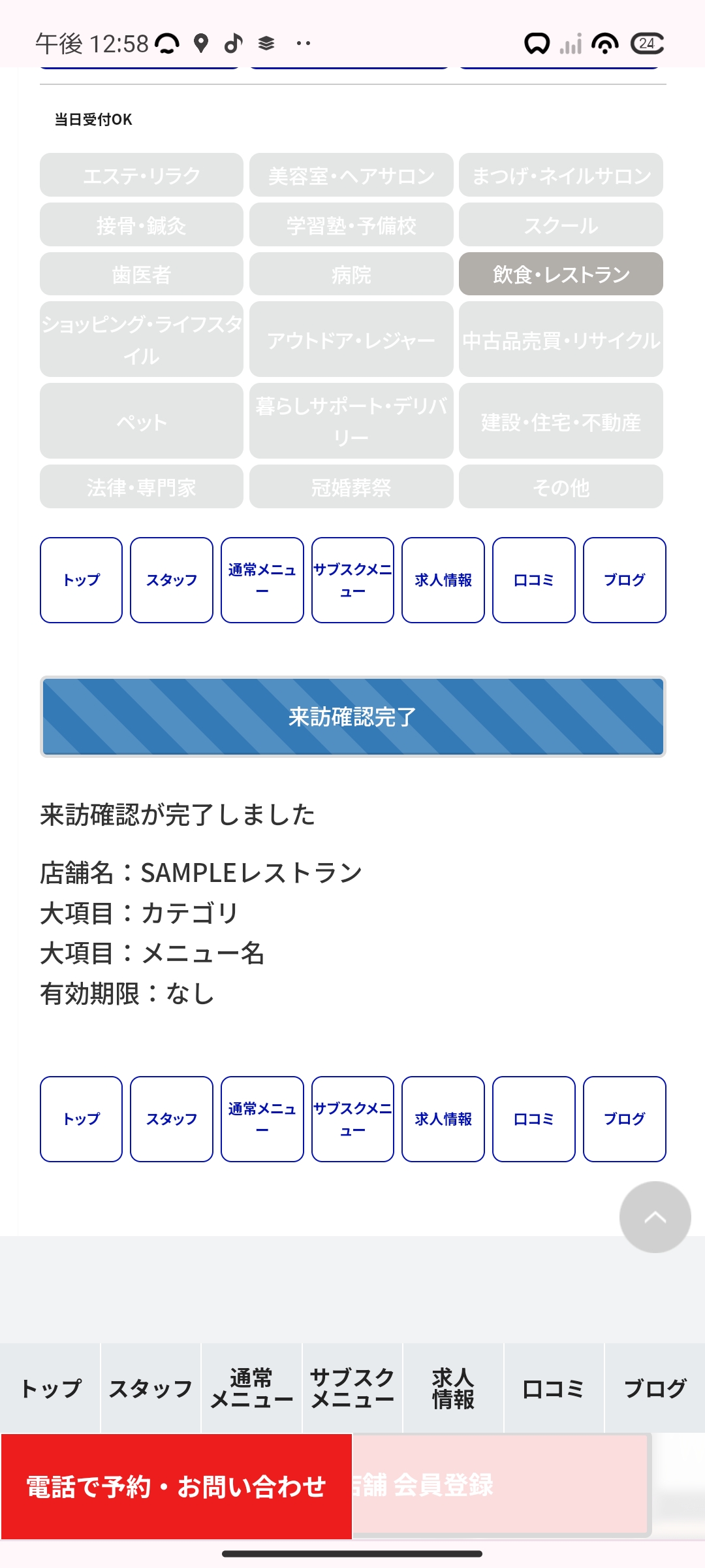 ・サブスク内容が予約必須のサービスの場合、利用回数は自動的に減少しておりますので、現場で確認することは「予約内容」になります。