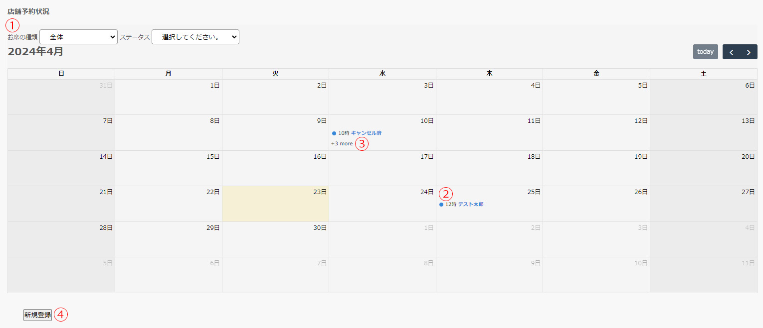 ④:お電話や口頭での予約などに対し、手動で予約枠を確保することができます。