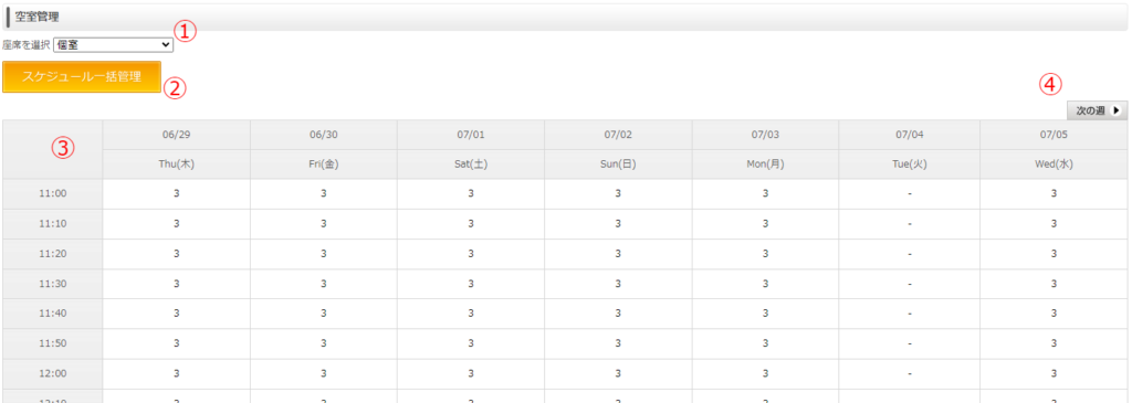 ④:次の週の空室を管理することが可能です。