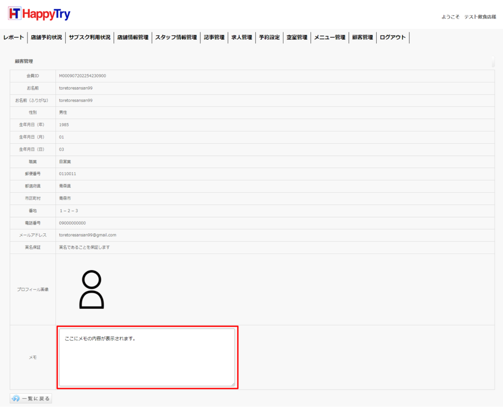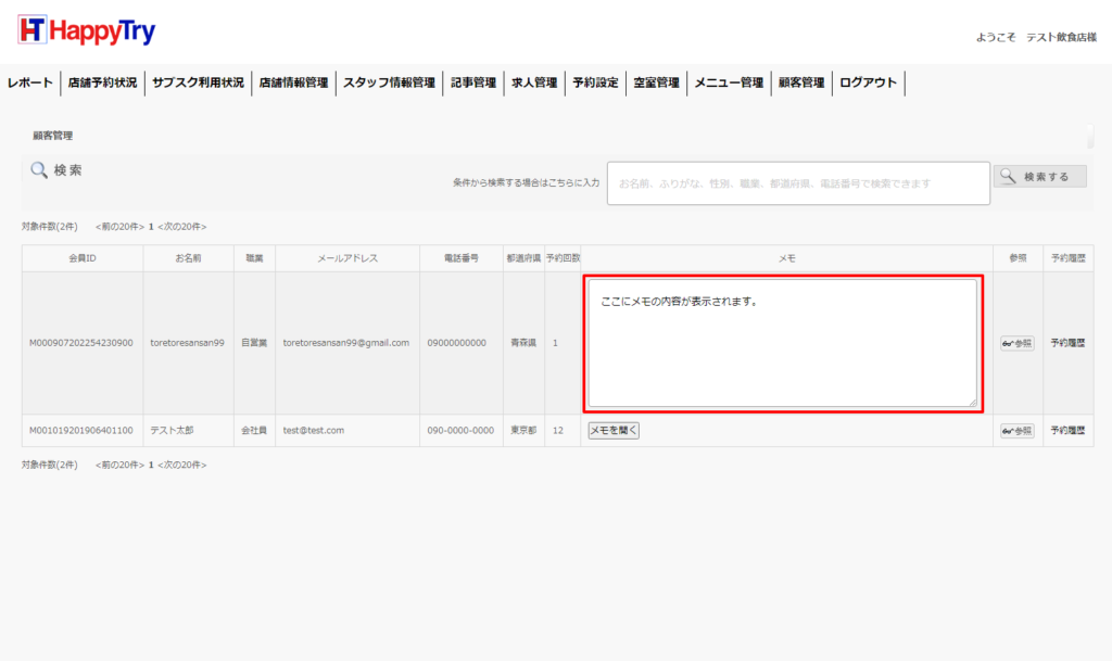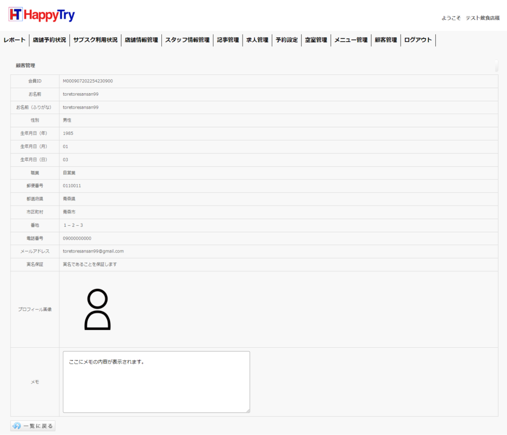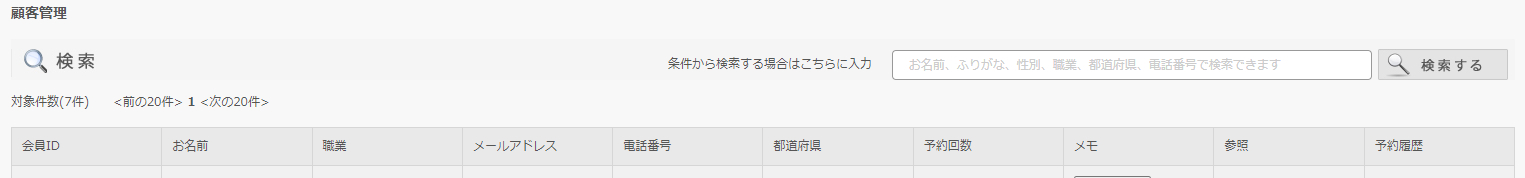 顧客管理画面では、一覧で以下の情報を確認することができます。